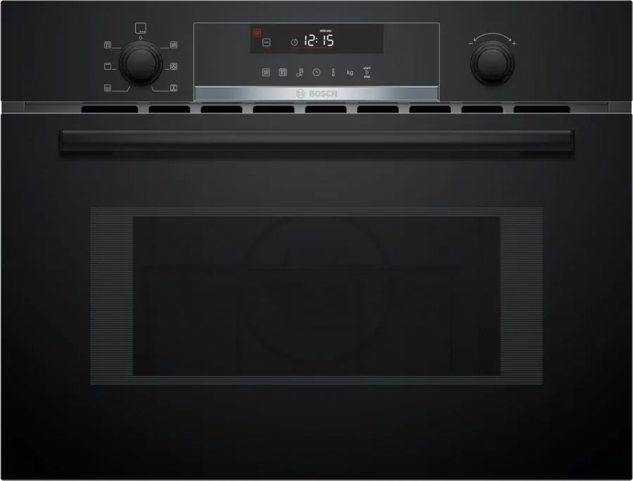 Kuchenka mikrofalowa Bosch CMA585GB1 do zabudowy ma pojemność 44 litry i moc mikrofal od 90 do 900 W. Wyposażona jest w 15 programów oraz system oczyszczania hydrolizą, który ułatwia utrzymanie czystości dzięki działaniu pary wodnej. Urządzenie ma wymiary 454x594x570 mm i nowoczesny czarny kolor.