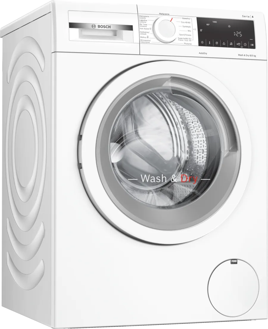 Pralko-suszarka Bosch WNA13401PL pozwala na pranie do 8 kg i suszenie do 5 kg odzieży. Kompaktowe wymiary 848x598x590 mm ułatwiają ustawienie urządzenia w łazience. Pracuje cicho z poziomem hałasu 70 dB. Możliwość dołożenia lub wyjęcia prania w trakcie cyklu zwiększa wygodę użytkowania.