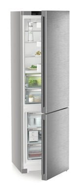 Chłodziarko-zamrażarka Liebherr CBNsda 572i z systemem BioFresh i NoFrost zapewnia dłuższą świeżość produktów bez konieczności rozmrażania. Wyposażona w cyfrowy wyświetlacz temperatury, SmartDeviceBox do zdalnego sterowania oraz alarm otwartych drzwi i sygnał awarii. Wnętrze zawiera 3 półki GlassLine, półkę na butelki, 2 szuflady BioFresh na teleskopowych prowadnicach oraz 3 szuflady VarioSpace w zamrażarce. Zdolność zamrażania wynosi do 10 kg na dobę.