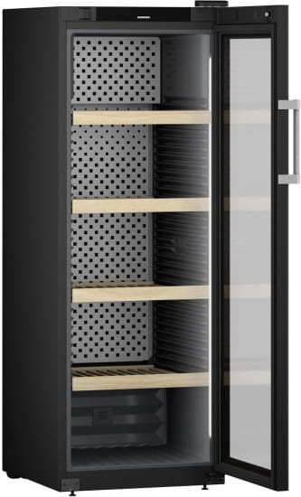 Szafka do wina Liebherr WPbli 5031 posiada jedną strefę temperatury regulowaną od +5°C do +20°C oraz wilgotność od 50% do 80%. Wyposażona w cyfrowy wyświetlacz, alarm otwartych drzwi i zabezpieczenie przed dziećmi. Chłodzenie konwekcyjne i filtr FreshAir zapewniają świeże powietrze. Posiada 5 regulowanych półek z drewna bukowego, oświetlenie LED oraz stalowy uchwyt.