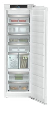 Zamrażarka Liebherr SIFNAd 5188 posiada 8 szuflad, w tym 5 teleskopowych, oraz funkcję IceMaker z przyłączeniem do wody, produkującą do 0,8 kg kostek lodu dziennie. Urządzenie zamraża do 12 kg produktów na dobę i wyposażone jest w cyfrowy wyświetlacz temperatury oraz alarmy wizualne i akustyczne. Oświetlenie LED i funkcja VarioSpace zapewniają wygodne i elastyczne przechowywanie żywności.