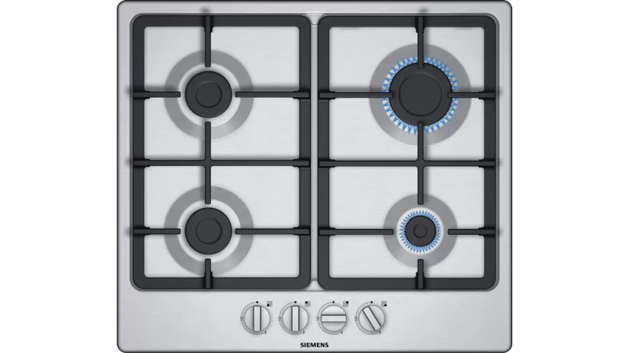Płyta gazowa Siemens EG6B5PB90 posiada 4 palniki, co pozwala na jednoczesne gotowanie kilku potraw. Wyposażona jest w zabezpieczenie przeciwwypływowe gazu oraz zapalarkę dla większego bezpieczeństwa. Solidny, dwuczęściowy żeliwny ruszt zapewnia stabilność naczyń. Obsługuje gazy 2E i 3B/P.