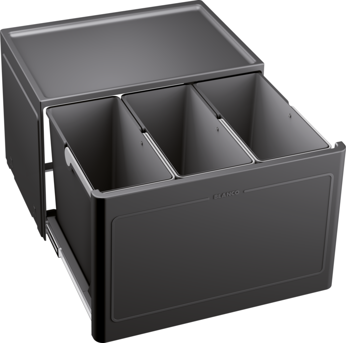 Selektor Blanco BOTTON PRO 60/3 automatic 517470 to stabilny system organizacyjny, który zapewnia szybki i prosty montaż dzięki uchwytom montażowym. Wyposażony w w pełni wyciąganą prowadnicę kulkową, umożliwia optymalne wykorzystanie przestrzeni w szafkach o szerokościach 45 i 60 cm. Pojemniki są łatwe do czyszczenia i posiadają ergonomiczne uchwyty, oferując dużą przestrzeń na odpadki (26 l lub 39 l).
