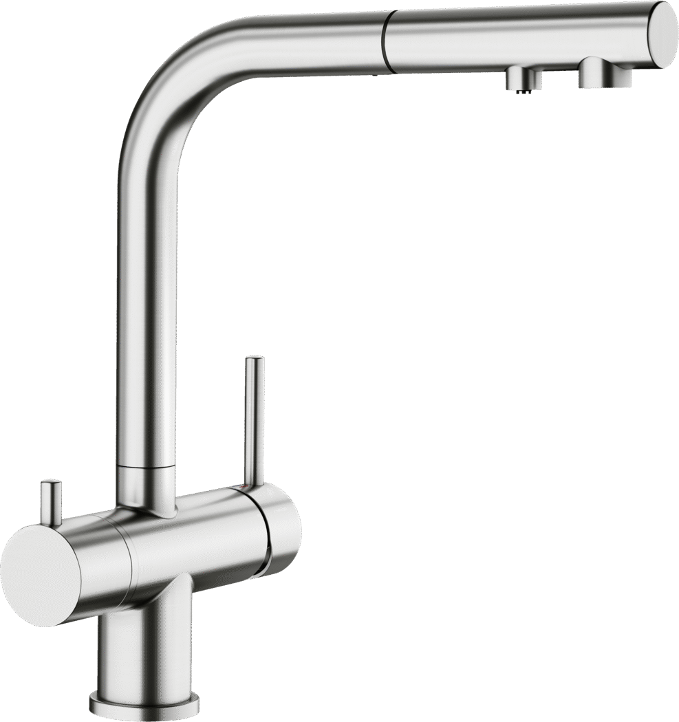 Bateria Blanco FONTAS-S II to praktyczne rozwiązanie 3 w 1 z osobnym obiegiem wody. Posiada dźwignię do zimnej i ciepłej wody oraz osobną do wody filtrowanej. Czarne, matowe wykończenie doskonale komponuje się z otoczeniem. Dodatkowa wylewka eliminuje potrzebę wiercenia dodatkowego otworu. Wymaga montażu systemu filtrowania wody.