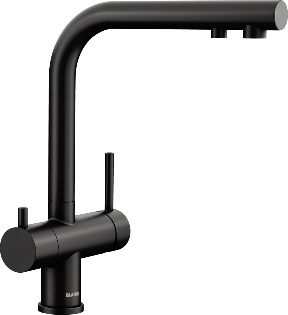 Bateria kuchenna BLANCO FONTAS II w czarnym matowym wykończeniu oferuje funkcjonalność 3 w 1. Posiada oddzielne dźwignie do zimnej, ciepłej i filtrowanej wody, co zapobiega mieszaniu się wody z wodociągu z filtrowaną. Obracana wylewka o 360° zwiększa wygodę użytkowania i oszczędza miejsce, eliminując potrzebę dodatkowego otworu na wodę filtrowaną.