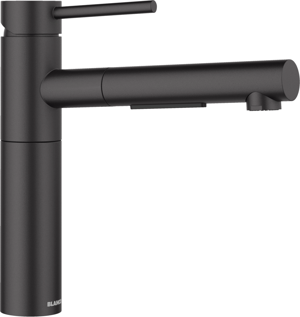 Bateria Blanco ALTA-S II w kolorze czarnym to elegancka i funkcjonalna bateria kuchenna. Wyposażona w wysoką, wyciąganą wylewkę z dwoma rodzajami strumienia, ułatwia napełnianie dużych garnków. Wylewka obraca się o 140°, co zwiększa zasięg użytkowania.
