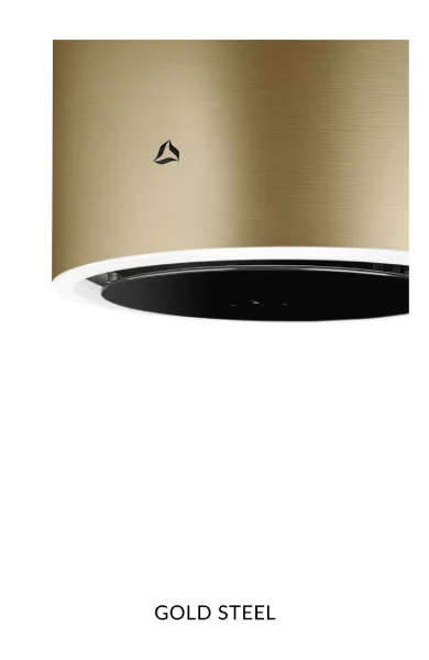 Okap Ciarko Design CDP3801GS Tubus Gold Steel to elegancki model przyścienny o wymiarach 80 x 38 x 48 cm, z klasą energetyczną A+. Charakteryzuje się cichą pracą (39–69 dB) i wydajnością od 160 do 670 m³/h. Posiada oświetlenie LED po obwodzie oraz wygodne sterowanie gestem lub pilotem radiowym. Wyposażony w filtr węglowy FWK228, który wymaga wymiany co około 4 miesiące.