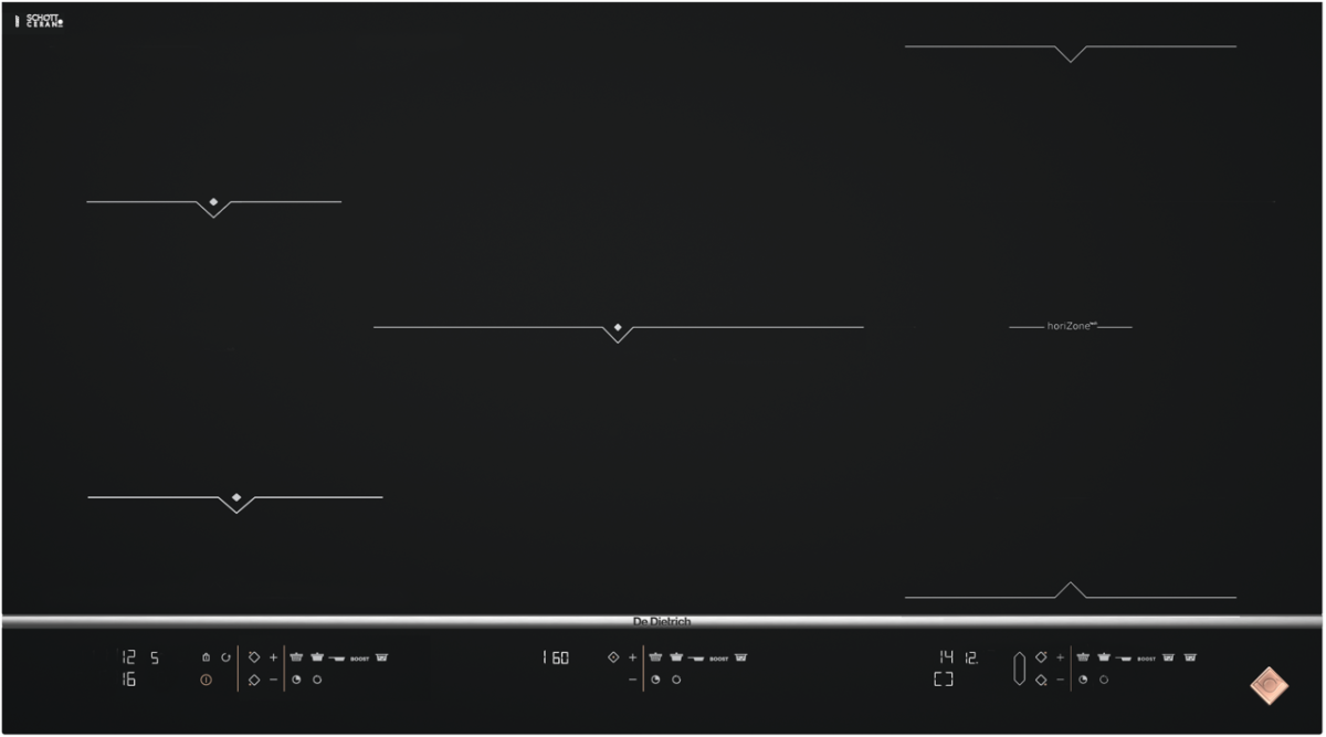 Płyta indukcyjna De Dietrich HORIZONE 80 CM DPI7878X posiada 5 niezależnych stref grzejnych o łącznej mocy 7400 W, co zapewnia szybkie i efektywne gotowanie. Elastyczna powierzchnia HoriZone pozwala na optymalne wykorzystanie przestrzeni, a funkcja bridge umożliwia łączenie pól grzejnych w jedną strefę. Intuicyjny wyświetlacz i 20 poziomów mocy ułatwiają precyzyjne sterowanie. Płyta wyróżnia się eleganckim designem z ozdobną listwą ze stali nierdzewnej.