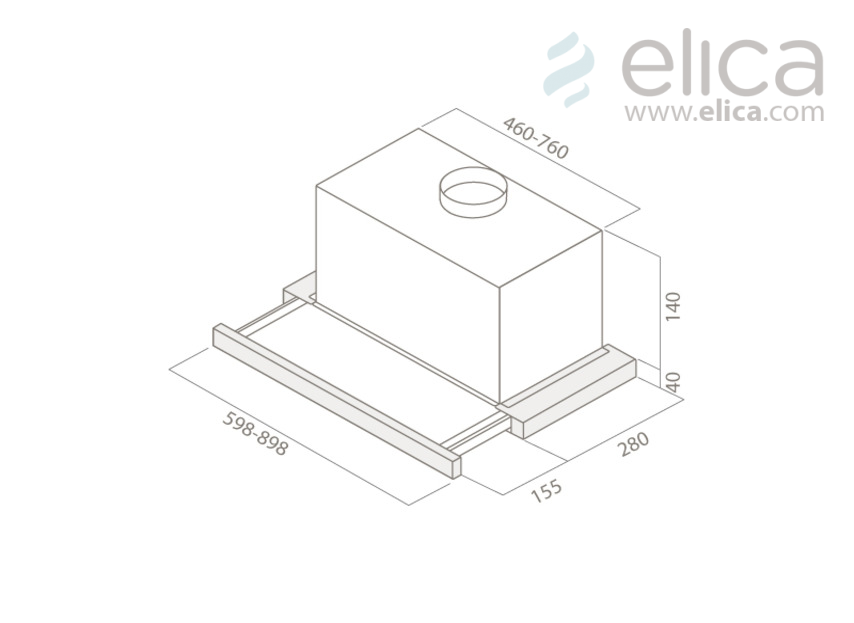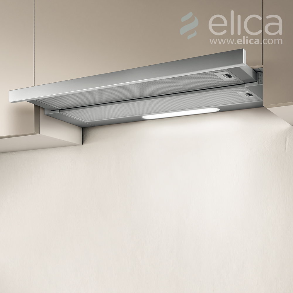Okap Elica ELITE 14 PLUS GRIX/A/60 o szerokości 60-90 cm wykonany jest ze stali nierdzewnej i szkła. Wyposażony w oświetlenie LED 2x3 W o natężeniu 73 LUX oraz sterowanie mechaniczne przyciskiem. Poziom hałasu wynosi od 46 do 62 dB. W zestawie znajduje się aluminiowy filtr przeciwtłuszczowy.