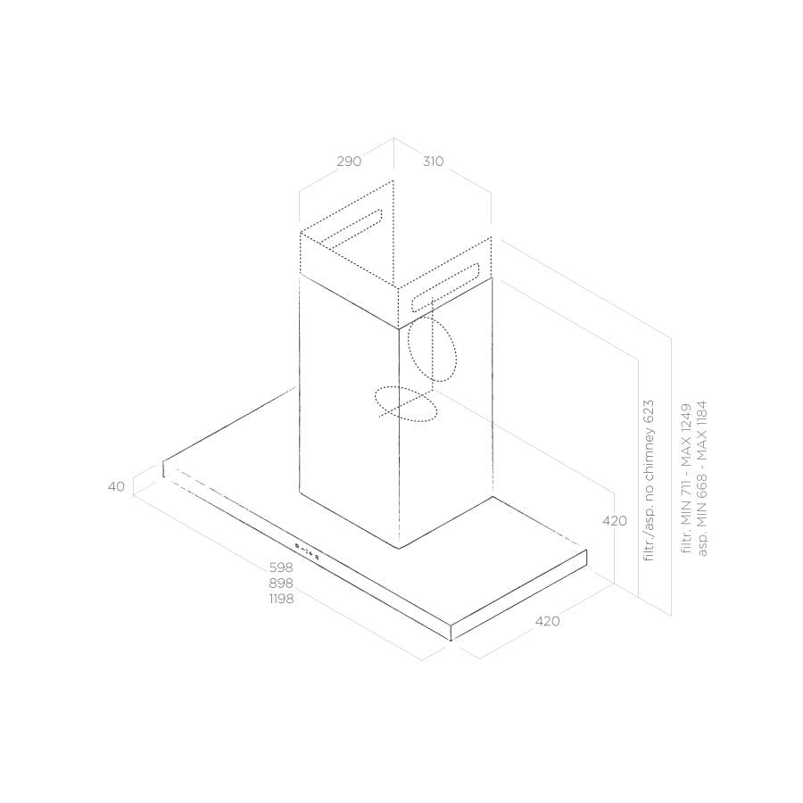 Okap Elica Thin IX/A/90 wykonany ze stali nierdzewnej dostępny w rozmiarach 60, 90 i 120 cm. Wyposażony w listwę LED 7 W o natężeniu 477 LUX i temperaturze barwowej 3500 K. Sterowanie dotykowe 3S+2B zapewnia wygodną obsługę. Poziom hałasu wynosi od 34 do 52 dB(A). W zestawie znajduje się aluminiowy filtr przeciwtłuszczowy oraz komin.