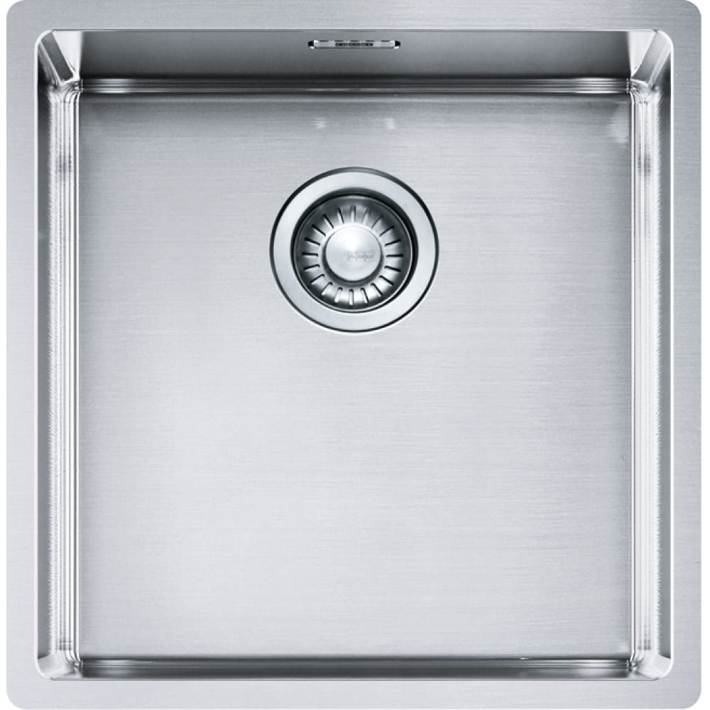 Zlew Franke Box BXX 210/110-40 wykonany ze stali szlachetnej ma wymiary zewnętrzne 440 x 450 mm, a komora mierzy 400 x 410 x 200 mm. Przeznaczony jest do montażu wpuszczanego z wycięciem 410 x 420 mm. W zestawie znajduje się korek zatyczkowy z sitkiem.
