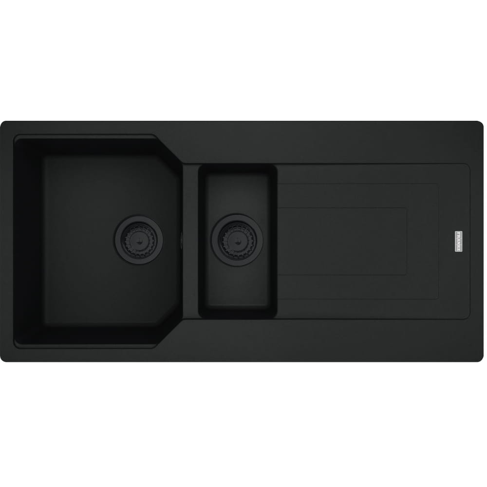 Zlew Franke Fragranit+ Urba UBG 651-100 w kolorze czarny mat wykonany jest z trwałego materiału Fragranit+, odpornego na zarysowania i wysokie temperatury. Posiada praktyczny ociekacz ułatwiający zmywanie i suszenie naczyń. Czarny odpływ podkreśla nowoczesny wygląd zlewu.