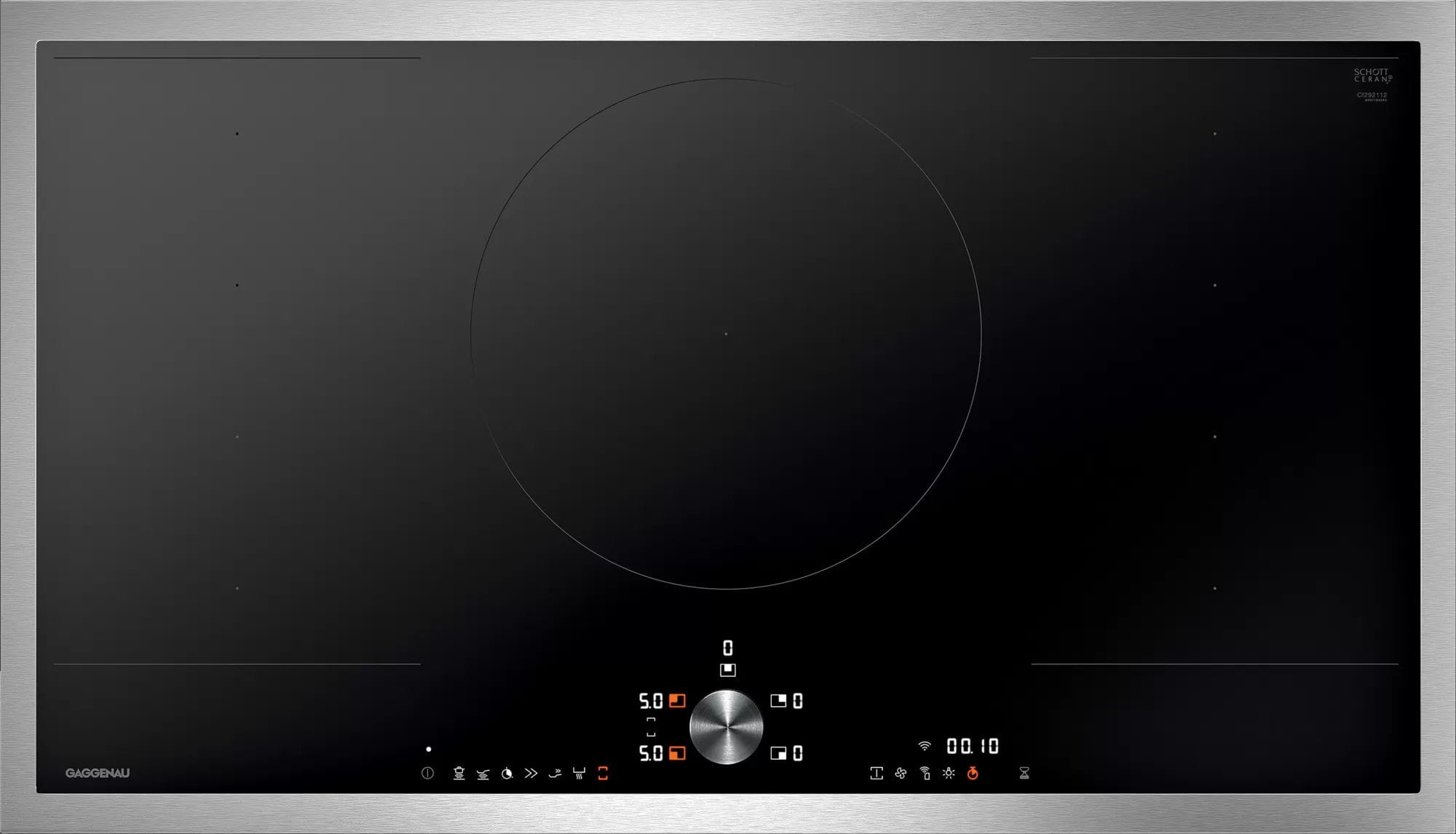 Płyta indukcyjna Gaggenau CI292112 o szerokości 90 cm posiada 5 stref gotowania, w tym 2 strefy flex. Wytrzymała stalowa rama zwiększa trwałość urządzenia. Twist pad ułatwia obsługę, a funkcja Home Connect pozwala na zdalne sterowanie płytą.