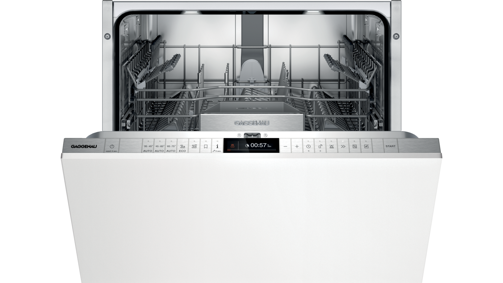 Zmywarka Gaggenau DF271101F mieści 12 kompletów naczyń i oferuje 6 programów z funkcjami dodatkowymi, takimi jak Power, Intensywna, HalfLoad i Machine Care. Klasa energetyczna B pozwala oszczędzać energię, a Aqua sensor i Aqua stop dbają o bezpieczeństwo. Ochrona szkła Zeolith oraz cicha praca (43 dB) sprawdzą się w nowoczesnej kuchni. Komfort użytkowania zwiększają oświetlenie wnętrza, Push-to-Open i Home Connect.