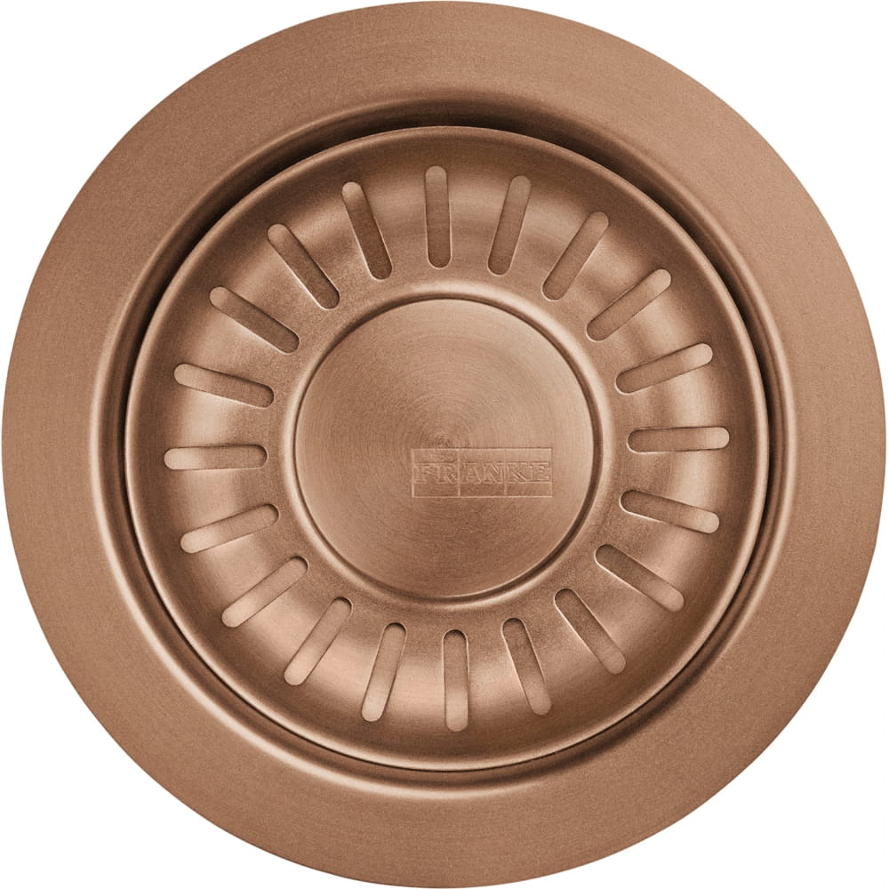 Automatyczny korek Mythos Masterpiece marki Franke w kolorze miedzianym, wykonany ze stali szlachetnej. Przeznaczony do zlewozmywaków z tej samej serii, gwarantuje trwałość i estetyczne dopasowanie. Kod produktu: 112.0629.956.