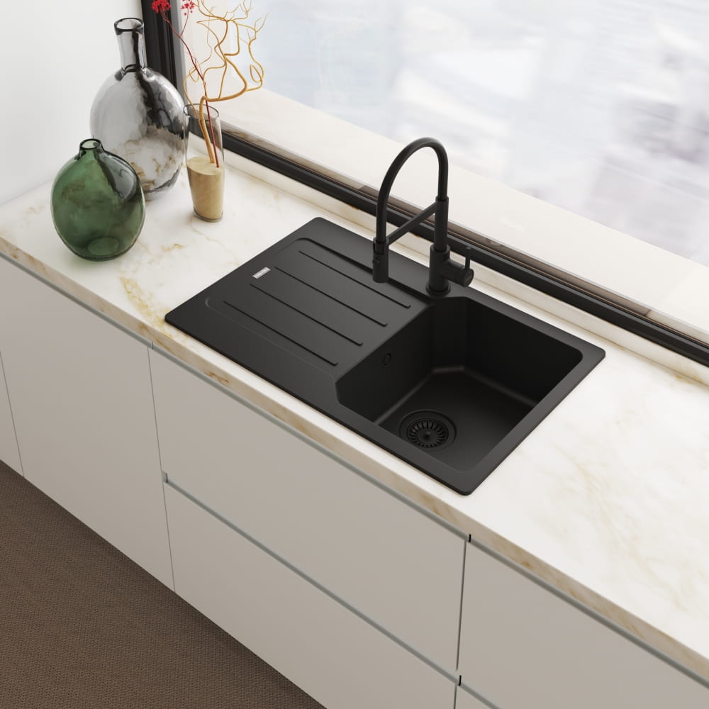 Bateria kuchenna Franke Lina semi-pro w kolorze czarny mat posiada ruchomą wylewkę obracającą się o 360° oraz elastyczny wąż z funkcją prysznica, co ułatwia codzienne mycie. Ceramiczna głowica zapewnia trwałość i odporność na uszkodzenia. Mieszacz umieszczony z boku pozwala na montaż blisko ściany. Wysokociśnieniowa konstrukcja i łatwy montaż sprawdzą się w każdej kuchni.