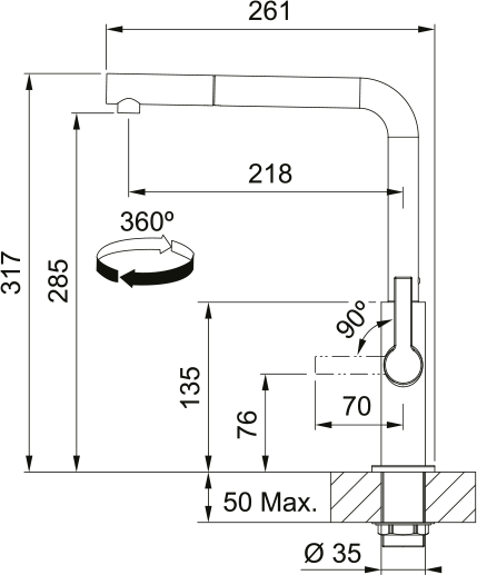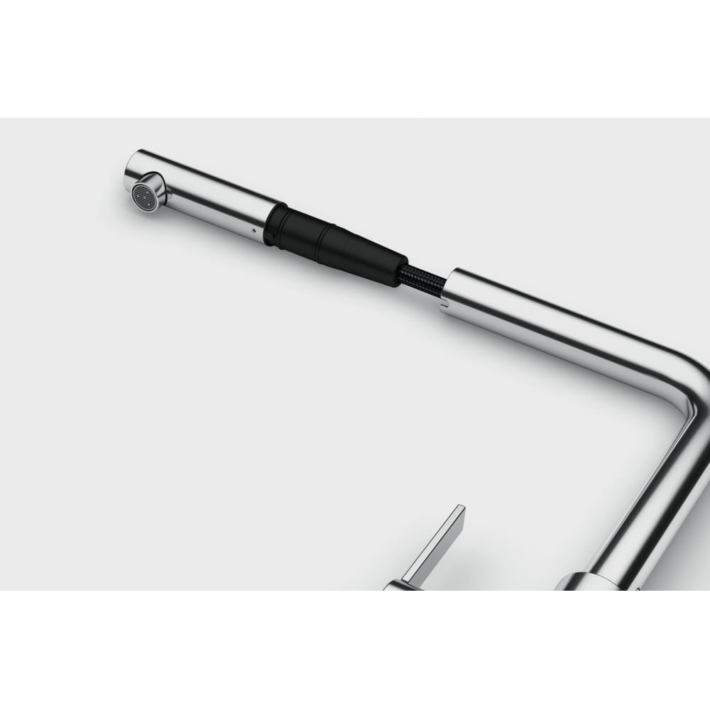 Bateria kuchenna Franke Maris Slim L pull-out Chrom wykonana z mosiądzu w kolorze chromu. Wyposażona w głowicę ECO, która pozwala zmniejszyć zużycie wody o 50%. Aerator laminarowy zapewnia cichy strumień bez rozprysków. Idealnie pasuje do zlewozmywaków Franke Maris.