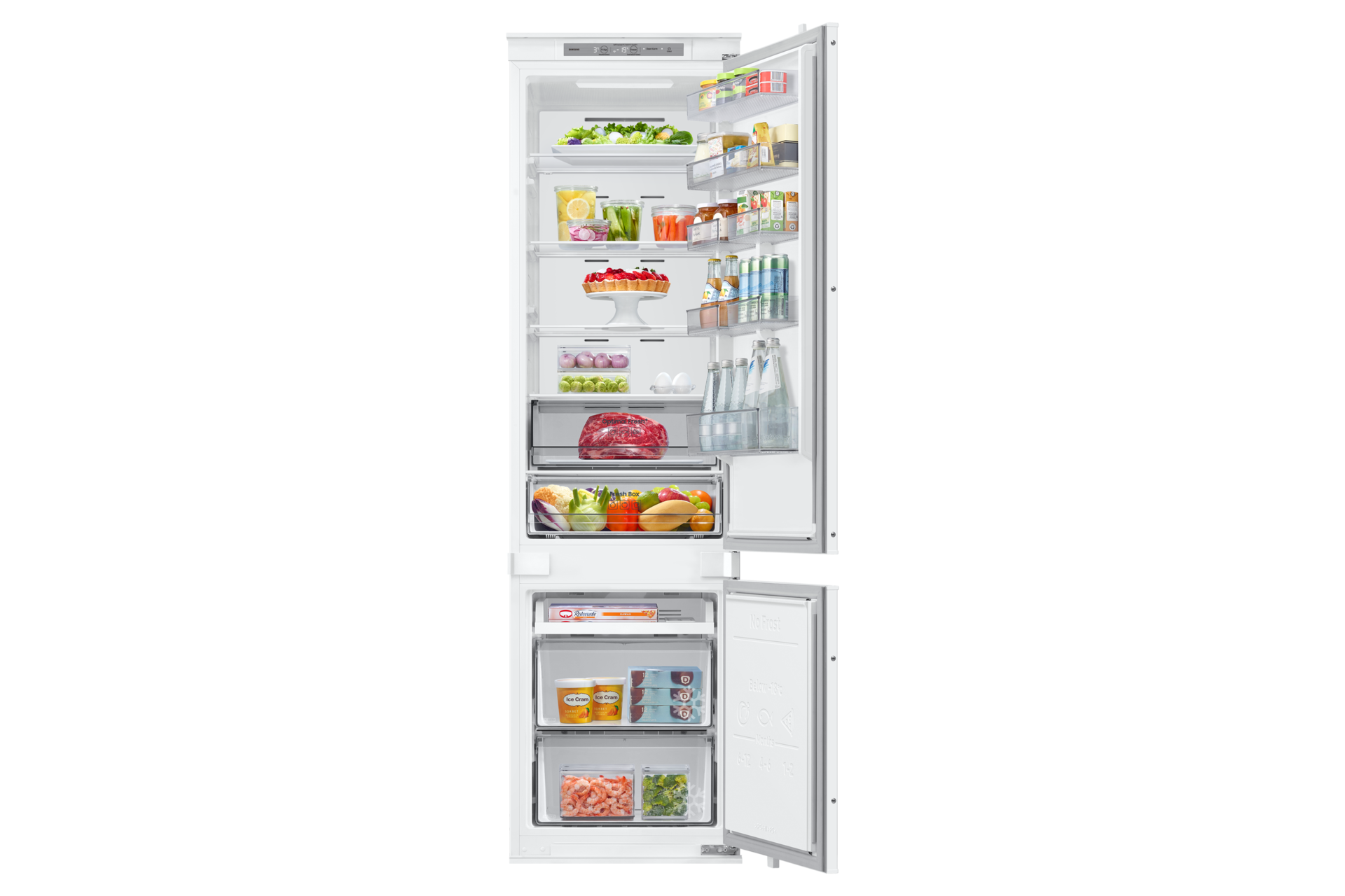 Chłodziarka Samsung BRB70F30BES0EO oferuje pojemność 298 litrów i system Twin Cooling, który zapewnia świeżość produktów. Wyposażona w 4 półki, 7 pojemników w drzwiach oraz szuflady Fresh Box i Optimal Fresh +. Klasa energetyczna E i roczne zużycie energii 229 kWh gwarantują oszczędność. Dodatkowe funkcje to Power Cool, Power Freeze oraz wbudowane WiFi z obsługą aplikacji SmartThings.