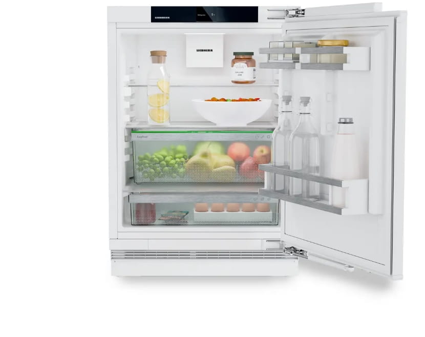 Chłodziarka do zabudowy zintegrowanej URc 375i marki Liebherr ma pojemność 134 litrów i pracuje bardzo cicho (32 dB). Wyposażona w funkcję EasyFresh, która pomaga dłużej zachować świeżość produktów. Klasa energetyczna C oraz możliwość pracy w temperaturach od 10°C do 43°C zapewniają wszechstronne zastosowanie. Idealna do zabudowy podblatowej.