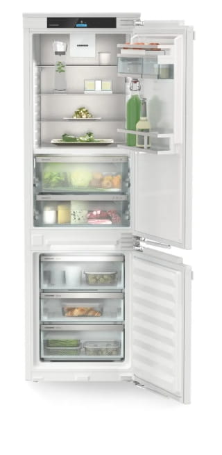 Chłodziarko-zamrażarka do zabudowy Liebherr ICBNbi 5153 o pojemności 245 litrów wyposażona w systemy BioFresh i NoFrost, które utrzymują świeżość produktów i zapobiegają powstawaniu szronu. Urządzenie pracuje cicho (29 dB), ma klasę energetyczną B i roczne zużycie energii 132 kWh. Przystosowana do pracy w szerokim zakresie temperatur od 10 do 43°C, sprawdzi się w różnych warunkach klimatycznych.