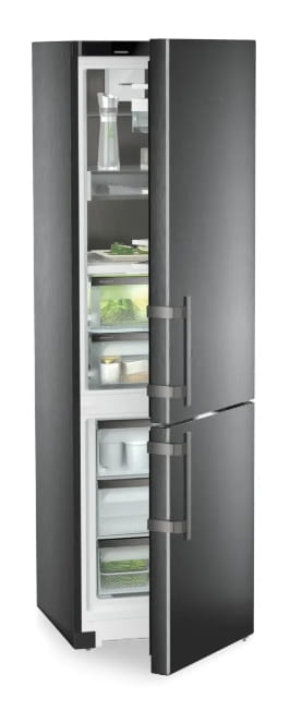 Chłodziarko-zamrażarka Liebherr CBNbsa10 575i-1 o pojemności 362 litrów wyposażona w systemy BioFresh i NoFrost, które wydłużają świeżość produktów i eliminują konieczność rozmrażania. Urządzenie pracuje bardzo cicho (29 dB) i zużywa tylko 104 kWh energii rocznie (klasa A). Wymiary: 201,5 cm wysokości, 59,7 cm szerokości, 67,5 cm głębokości.