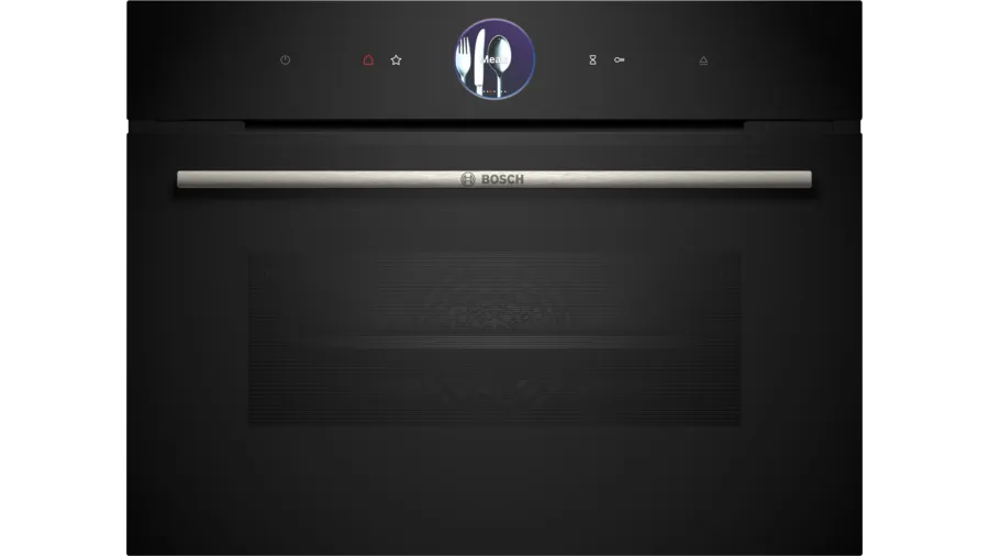 Kompaktowy piekarnik parowy Bosch CSG7364B1 oferuje 21 funkcji, w tym Air Fry oraz różne metody grzania z wykorzystaniem pary, takie jak regeneracja i fermentacja. Posiada dotykowy wyświetlacz TFT i cyfrowy pierścień sterujący, co ułatwia obsługę. Termosonda PerfectRoast Plus i czujnik pieczenia PerfectBake Plus zapewniają precyzyjne gotowanie. Funkcja air dry umożliwia suszenie powietrzem bez dodatkowego grzania.