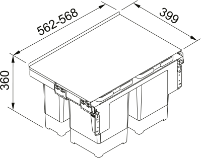 Sortownik odpadów Garbo 60-4 marki Franke wyposażony jest w 4 pojemniki o pojemnościach 2 x 8 l i 2 x 12 l oraz cichy domyk. Posiada metalową półkę i łatwy montaż do ściany bocznej oraz frontu szafki, co pozwala na dopasowanie do różnych grubości ścianek. Ułatwia efektywne zarządzanie odpadami i utrzymanie porządku w kuchni.