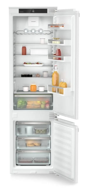 Lodówka Liebherr ICNd 5603 to zintegrowana chłodziarko-zamrażarka o pojemności 284 litrów z systemami EasyFresh i NoFrost, które utrzymują świeżość produktów i eliminują rozmrażanie. Urządzenie pracuje cicho na poziomie 33 dB i ma klasę energetyczną D z rocznym zużyciem energii 180 kWh. Przystosowana jest do pracy w różnych warunkach klimatycznych, od umiarkowanych po tropikalne.