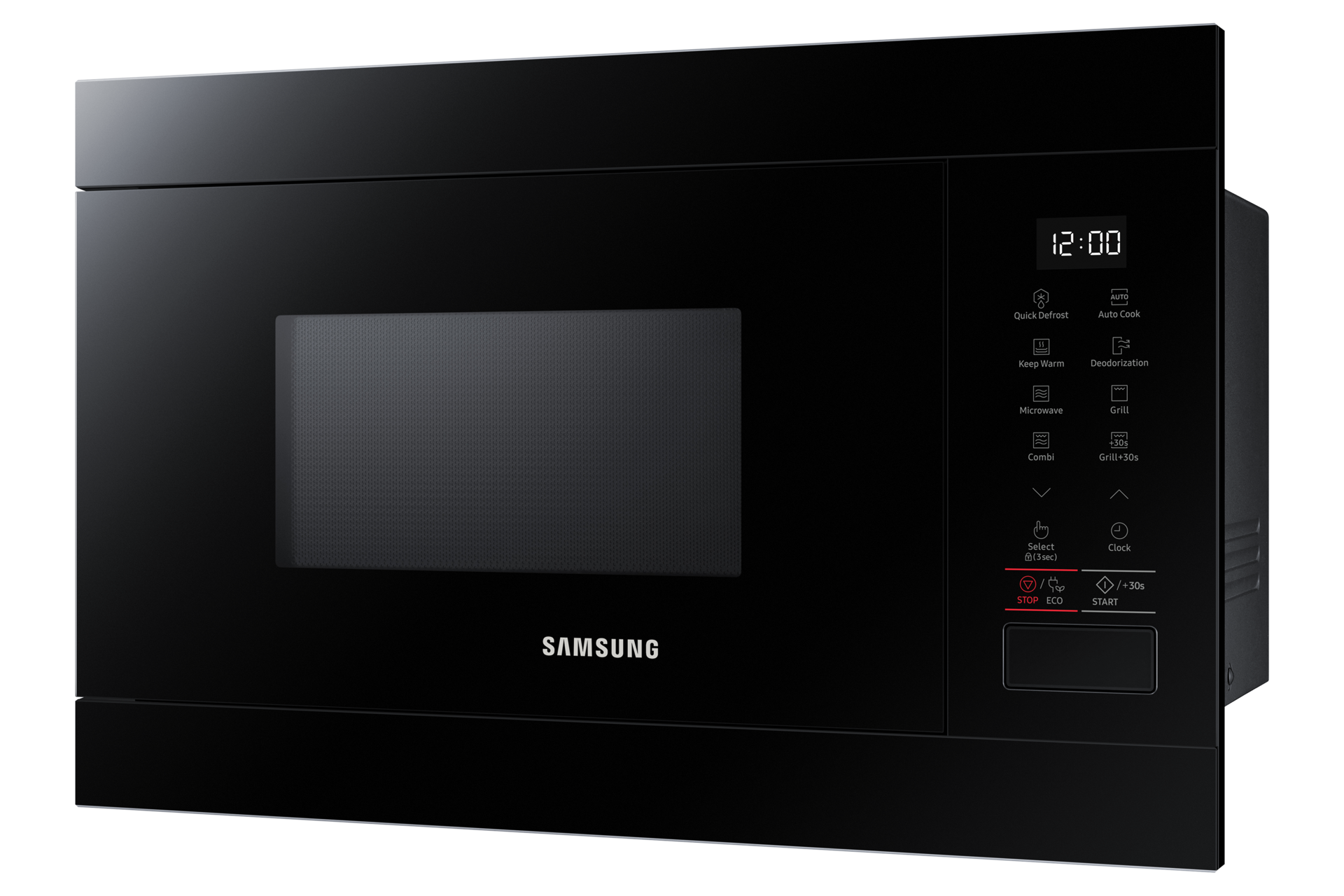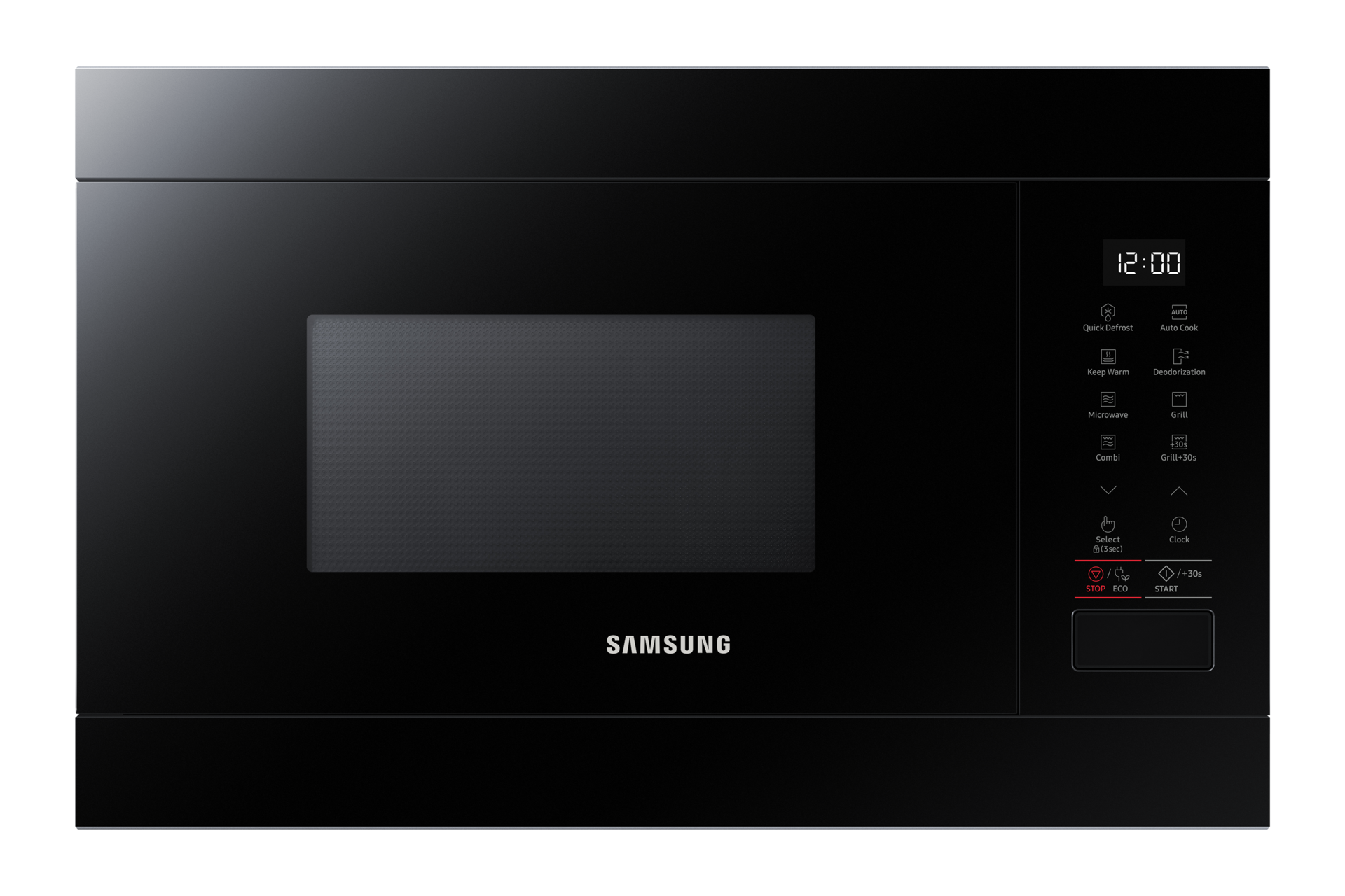 Mikrofala do zabudowy Samsung MG22T8254AB oferuje pojemność 22 litrów i moc mikrofal 850 W. Wyposażona w 6 poziomów mocy, funkcję Browning Plus oraz programy automatyczne, ułatwia codzienne gotowanie. Posiada dotykowe sterowanie, metalowy ruszt i eleganckie, czarne wykończenie z błyszczącą ramką. Idealna do nowoczesnych kuchni.