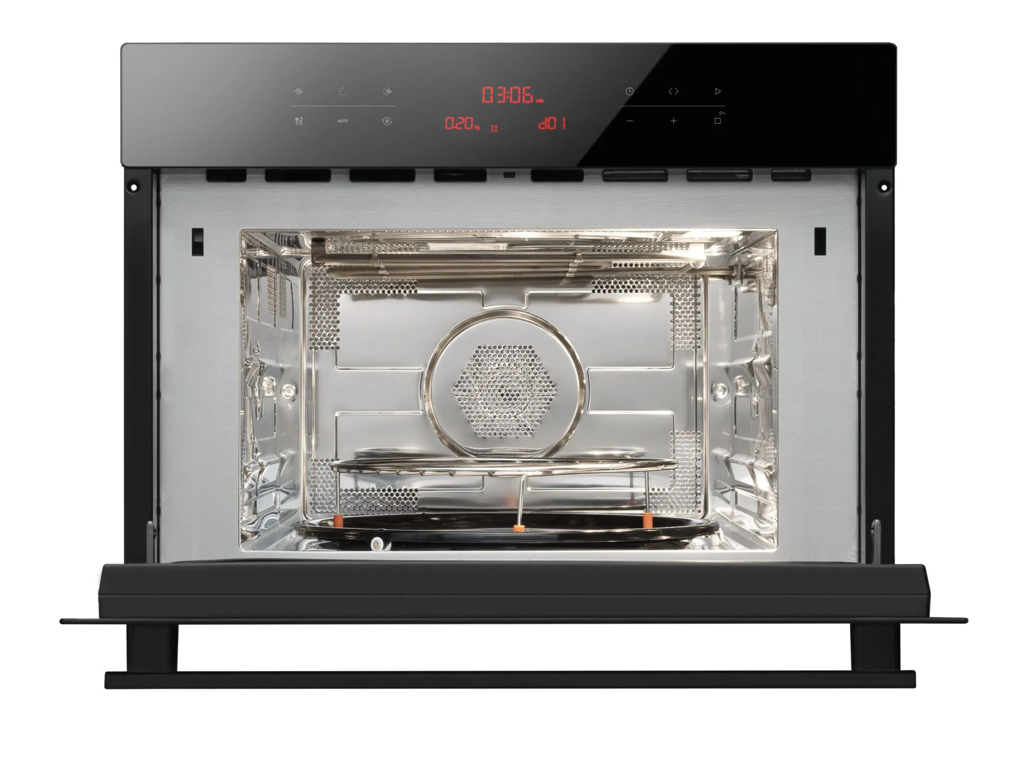 Piekarnik z mikrofalą Amica AMMB 44E2GCB STUDIO oferuje pojemność 44 litry i 13 programów gotowych, w tym termoobieg. Wyposażony w funkcję Combigrill oraz sterowanie sensorowe, zapewnia wygodę użytkowania. SoftClose umożliwia ciche domykanie drzwi. Wymiary urządzenia to 455/595/568 mm.