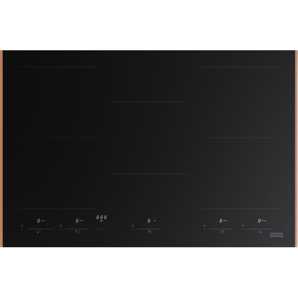 Płyta indukcyjna Franke Mythos Masterpiece K-Link FMY 805 I F KL CP wykonana z czarnego szkła posiada pięć stref gotowania z dotykowym sterowaniem oraz dziewięć poziomów mocy i funkcję booster. Technologia K-Link umożliwia automatyczne połączenie z okapem. Funkcja bridge pozwala na łączenie pól grzejnych w jedną strefę, co ułatwia gotowanie w dużych naczyniach.