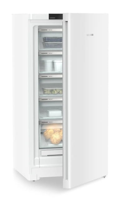 Zamrażarka wolnostojąca Liebherr FNa 6635 o pojemności 260 litrów z systemem NoFrost, który eliminuje konieczność rozmrażania. Urządzenie pracuje cicho (33 dB) i jest energooszczędne (klasa A, roczne zużycie energii 99 kWh). Kompaktowe wymiary: 145,5 cm wysokości, 69,7 cm szerokości i 76 cm głębokości.