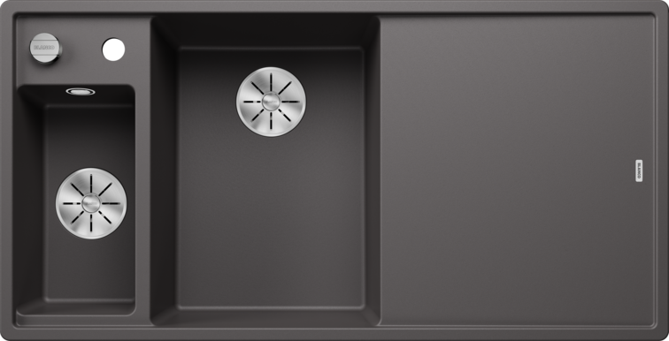Zlew Blanco AXIA III 6 S w kolorze szarości skały wykonany z wytrzymałego Silgranitu. Posiada automatyczny korek i system odpływowy InFino. Przesuwana szklana deska i stalowa odsączarka zwiększają funkcjonalność i powierzchnię roboczą. Proste linie i wąskie krawędzie pozwalają maksymalnie wykorzystać przestrzeń zlewu.
