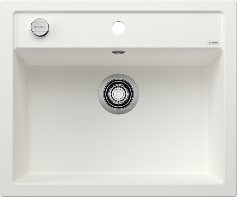 Zlew Blanco DALAGO 6 Silgranit biały to nowoczesny model z dużą komorą, idealny do przygotowywania posiłków i zmywania naczyń. Wyposażony w długą listwę na baterię, która chroni blat przed zachlapaniem. Przejrzyste wzornictwo i możliwość doposażenia w praktyczne akcesoria czynią go funkcjonalnym wyborem do każdej kuchni.