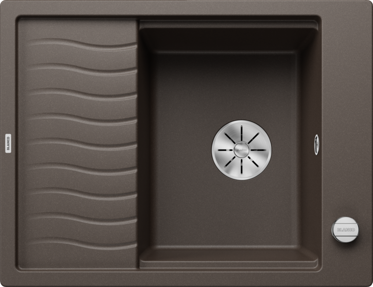 Zlew Blanco ELON 45 S Silgranit w kolorze kawowym to kompaktowy, jednokomorowy model idealny do szafek o szerokości 45 cm. Wyposażony w przesuwaną kratkę ociekową ze stali szlachetnej oraz system odpływowy InFino, zapewnia funkcjonalność i nowoczesny design. Możliwość montażu odwracalnego i boczna listwa na baterię umożliwiają instalację przy oknie.