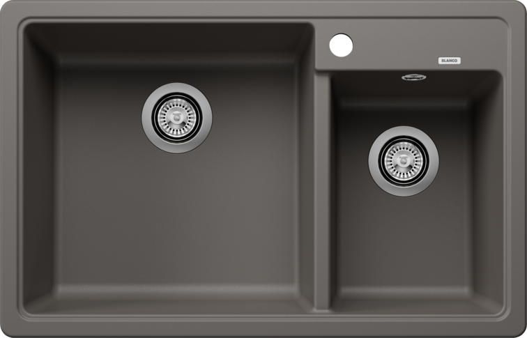 Zlew Blanco LEGRA 8 w kolorze wulkanicznego szarego Silgranit to połączenie nowoczesnej funkcjonalności z klasycznym designem. Wyposażony w podwójną komorę, zapewnia dużą przestrzeń, umożliwiając wygodne korzystanie z obu komór jednocześnie.
