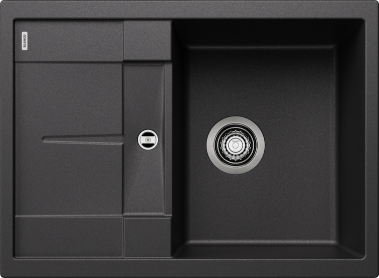 Zlew Blanco METRA 45 S Compact Silgranit w kolorze antracytowym oferuje dużą komorę, co zapewnia więcej miejsca do zmywania naczyń. Wyposażony w kompaktowy ociekacz ze zintegrowanym odpływem oraz niskoprofilowaną krawędź. Możliwy montaż odwracalny i podwieszany.