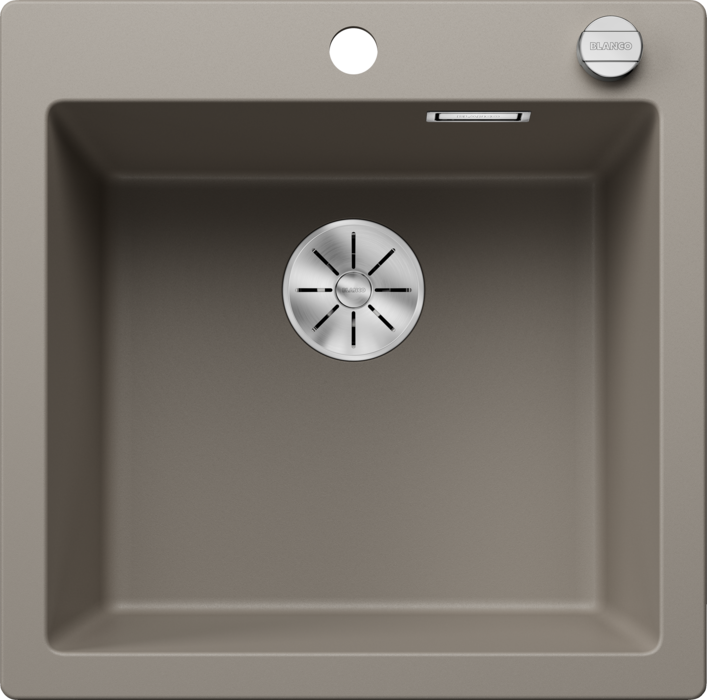 Zlew Blanco PLEON 5 Silgranit w kolorze tartufo to jednokomorowy zlewozmywak o dużej pojemności i głębokiej komorze. Wyposażony w system odpływowy InFino, który ułatwia utrzymanie czystości, oraz zakryty przelew C-overflow. Posiada obszerną listwę na baterię, co zwiększa wygodę użytkowania.
