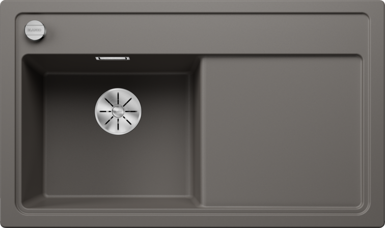 Zlew Blanco ZENAR 45 S Silgranit wulkaniczny szary lewa to praktyczne rozwiązanie do kuchni. Wyposażony w obszerną komorę, duży ociekacz oraz listwę na baterię na całej szerokości. Posiada korek automatyczny, zakryty przelew C-overflow i system odpływowy InFino, co ułatwia utrzymanie czystości.