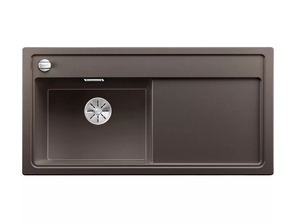 Zlew Blanco ZENAR XL 6 S Silgranit w kolorze kawowym oferuje dużą komorę o wymiarach 46,5 x 34,5 cm i głębokości 19 cm oraz obszerny ociekacz. Wyposażony w korek automatyczny, zakryty przelew C-overflow i system odpływowy InFino. Przeznaczony do szafek o szerokości od 60 cm, zewnętrzne wymiary to 100 x 51 cm. Syfon należy dokupić osobno.
