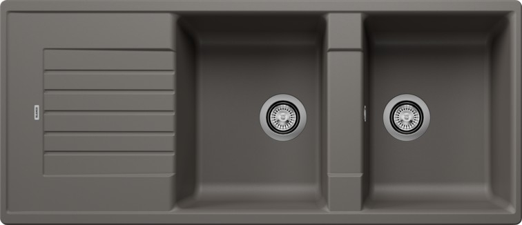 Zlew Blanco ZIA 8 S z Silgranitu w kolorze wulkanicznego szarego jest odporny na zarysowania i wysokie temperatury, co gwarantuje trwałość. Model odwracalny umożliwia elastyczny montaż, dostosowując się do różnych układów kuchni.