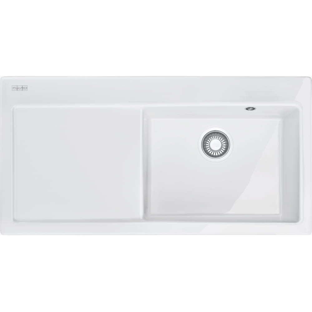 Zlewozmywak Franke Mythos MTK 611-100 w kolorze białym polarnym ma wymiary 1000 x 510 mm i komorę 492 x 372 x 190 mm. Wyposażony jest w korek automatyczny Flow Pro sterowany przyciskiem Easy Click, co ułatwia codzienne użytkowanie. Posiada dwa otwory o średnicy 35 mm.