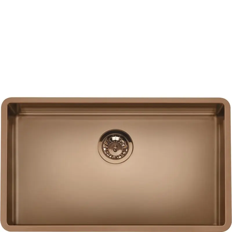 Zlewozmywak podwieszany Smeg VSTR71CUX wykonany ze stali nierdzewnej AISI304 z wykończeniem PVD w kolorze miedzi. Posiada jedną komorę o wymiarach 710 x 400 x 200 mm oraz całkowite wymiary 200x750x440 mm. Łatwy do czyszczenia, hypoalergiczny i przyjazny dla środowiska. Przeznaczony do montażu podwieszanego, bez otworu na baterię.