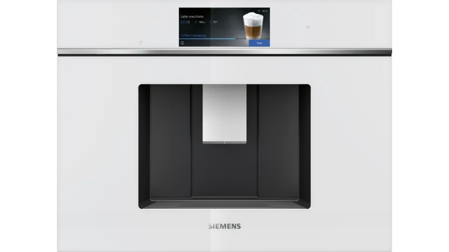 Ekspres do zabudowy Siemens CT718L1W0 ma moc 1500 W, ciśnienie 19 bar i pojemny zbiornik na wodę 2,4 l. Wyposażony w ceramiczny młynek silentCream Drive oraz systemy sensoFlow i aromaPressure zapewniające idealną temperaturę i aromat kawy. Umożliwia przygotowanie różnych napojów jednym przyciskiem i zapamiętanie do 30 ulubionych kaw. Posiada funkcję Home Connect do bezprzewodowego sterowania.