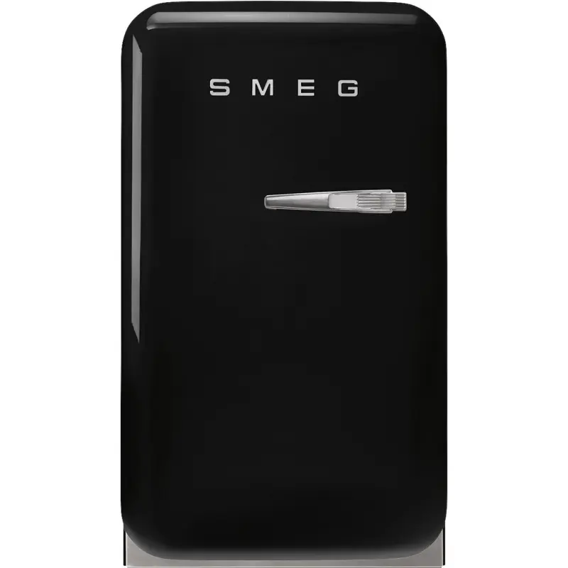Lodówka wolnostojąca SMEG FAB5LBL5 to kompaktowy minibar o wysokości 72,5 cm i pojemności 33 litrów. Posiada chromowany uchwyt po prawej stronie oraz zawiasy po lewej, bez możliwości zmiany kierunku otwierania drzwi. Idealna do przechowywania napojów i przekąsek w małych przestrzeniach.
