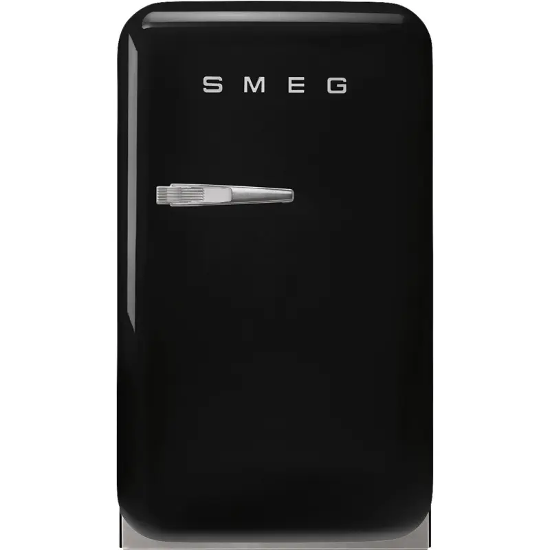 Lodówka wolnostojąca SMEG FAB5RBL5 w czarnym kolorze z chromowanym uchwytem ma wysokość 72,5 cm i pojemność 33 litrów, idealna jako minibar. Drzwi otwierają się na prawą stronę, bez możliwości zmiany kierunku otwierania.