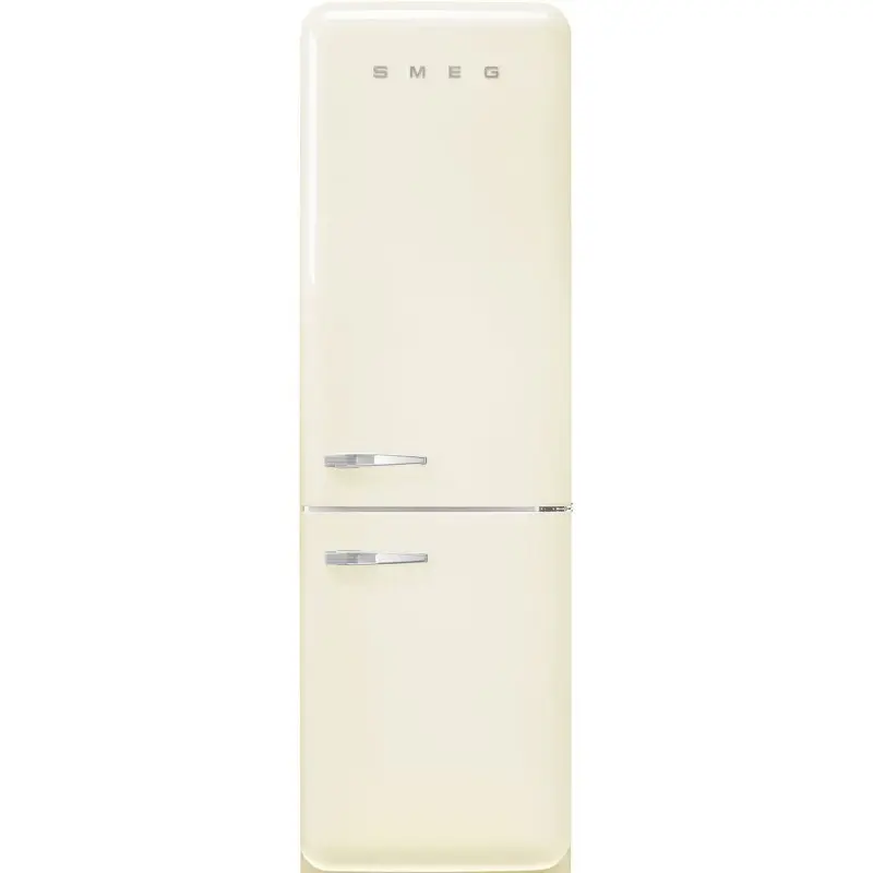 Chłodziarko-zamrażarka SMEG FAB32RCR5 o wysokości 196,8 cm i pojemności brutto 365 litrów. Wyposażona w system No-Frost, komorę Life Plus utrzymującą temperaturę 0°C oraz dynamiczną cyrkulację powietrza MultiFlow, co wydłuża świeżość produktów. Drzwi otwierają się na prawą stronę, bez możliwości zmiany kierunku otwierania.