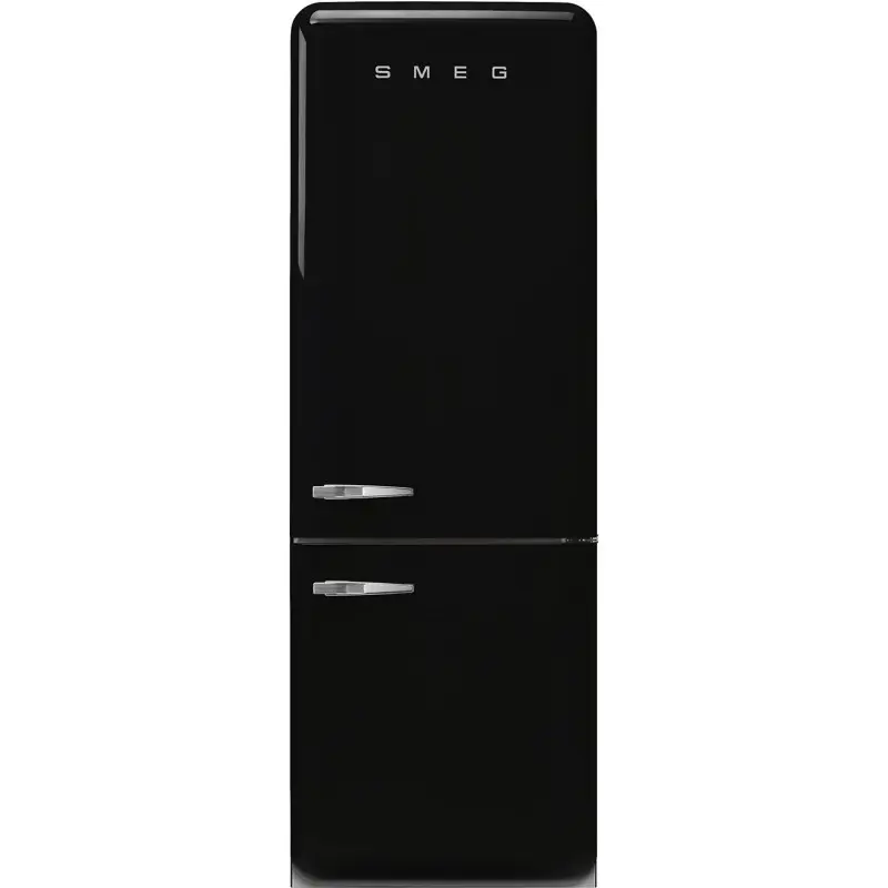 Lodówka wolnostojąca SMEG FAB38RBL5 o pojemności 510 litrów w czarnym kolorze z chromowanymi uchwytami. Wyposażona w technologię No-Frost i dynamiczną cyrkulację powietrza MultiFlow, które pomagają dłużej zachować świeżość produktów. Komora Life Plus utrzymuje temperaturę około 0°C, idealną do przechowywania delikatnych artykułów. Drzwi otwierają się na prawo, uchwyt jest po lewej stronie, bez możliwości zmiany kierunku otwierania.