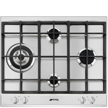 Płyta gazowa Smeg P261XGH ze stali nierdzewnej o szerokości 60 cm wyposażona jest w 4 palniki, w tym jeden o podwyższonej mocy. Żeliwne ruszty zapewniają stabilność naczyń, a zintegrowana zapalarka w pokrętle ułatwia obsługę. Zabezpieczenie przeciwwypływowe gazu zwiększa bezpieczeństwo użytkowania.