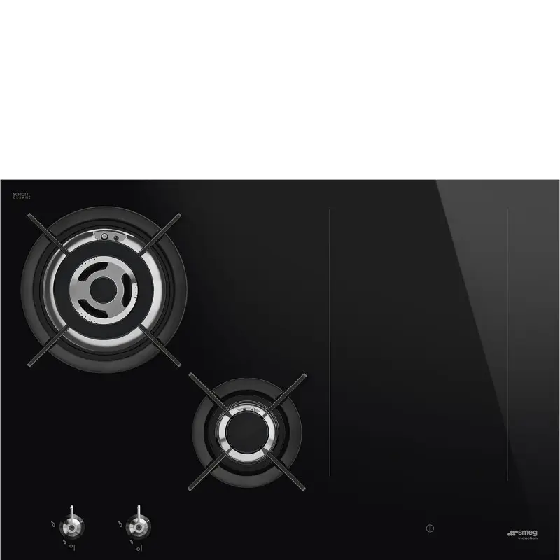 Płyta indukcyjno-gazowa SMEG PM3743D Classica posiada 4 strefy grzejne: 2 gazowe i 2 indukcyjne z funkcją Multizone oraz opcją łączenia pól grzejnych w jedną strefę (bridge), co zwiększa elastyczność gotowania. Wykonana z ceramiki Eclipse, wyposażona w stalowe pokrętła i czarne wykończenie. Płyta ma automatyczne wykrywanie wielkości naczyń, funkcję Booster przyspieszającą gotowanie, blokadę bezpieczeństwa, timer oraz funkcję utrzymywania potrawy w cieple.